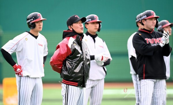 23일 경기도 이천 LG챔피언스파크에서 프로야구 LG 트윈스의 2021 스프링캠프가 열렸다. LG 류지현 감독이 훈련을 지켜보고 있다.