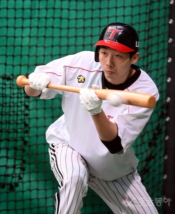 23일 경기도 이천 LG챔피언스파크에서 프로야구 LG 트윈스의 2021 스프링캠프가 열렸다. LG 김용의가 번트훈련을 펼치고 있다.