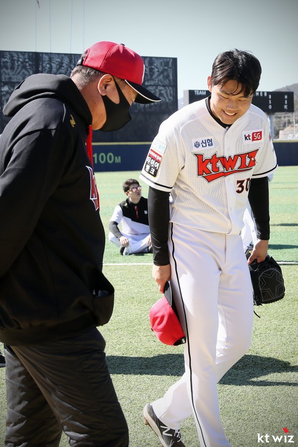 소형준은 루키였던 지난해 꾸준하게 선발로테이션을 지키며 13승을 따냈고, 당당히 신인왕도 거머쥐었다. 포스트시즌에선 팀의 1선발을 맡아 두산 베어스와 플레이오프 1차전에 나서 6이닝 무실점으로 호투한 바 있다. 한 시즌을 치렀을 뿐이지만 KT의 에이스로 인정받고 있다. 자신과 닮은 ‘국보급’ 투수와 만남을 통해 소형준이 2021시즌 얼마나 더 발전한 모습을 보일지 궁금하다.