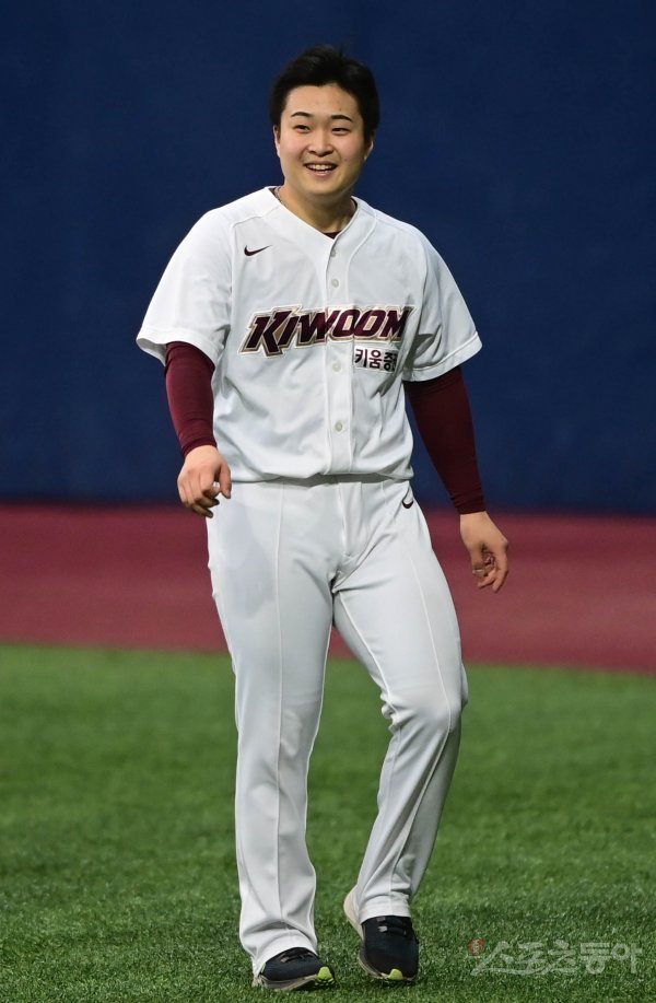 24일 서울 고척스카이돔에서 열린 키움 히어로즈의 2021 스프링캠프에서 김재웅이 훈련 중 웃고 있다.