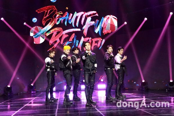 그룹 온앤오프가 24일 오후 첫 정규 앨범 \'ONF:MY NAME(온앤오프:마이 네임) 발매 온라인 쇼케이스에서 화려한 무대를 꾸미고 있다.