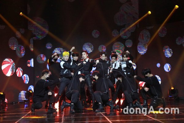 그룹 온앤오프의 유가 24일 오후 첫 정규 앨범 \'ONF:MY NAME(온앤오프:마이 네임) 발매 온라인 쇼케이스에서 화려한 무대를 꾸미고 있다.