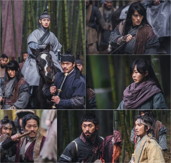 그런 가운데 공개된 사진 속 충녕대군과 사당패의 삼엄한 분위기가 시선을 사로잡는다. 아버지 태종(감우성 분)에게 부여받은 임무를 수행하고 조선으로 돌아가는 충녕대군. 그를 에워싼 사당패와 호위무사들은 한시도 경계를 늦추지 않는다. 이어진 사진 속 칼을 꺼내든 벼리(김동준 분)와 혜윰(금새록 분)의 날 선 시선은 심상치 않은 사건을 예고한다. 정체 모를 이와 대치한 창대(임기홍 분)의 모습 뒤로 동공지진을 일으키는 잉춘(민진웅 분), 부틀이(윤나무 분)의 모습도 흥미롭다.