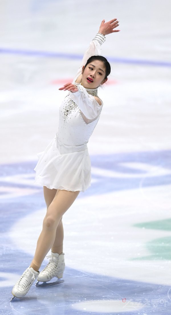 25일 의정부실내빙상장에서 열린 ‘KB금융 코리아 피겨스케이팅 Championships 2021(제75회 전국남녀 피겨스케이팅 종합선수권대회)’에서 한강중 이해인이 쇼트 프로그램을 연기하고 있다.