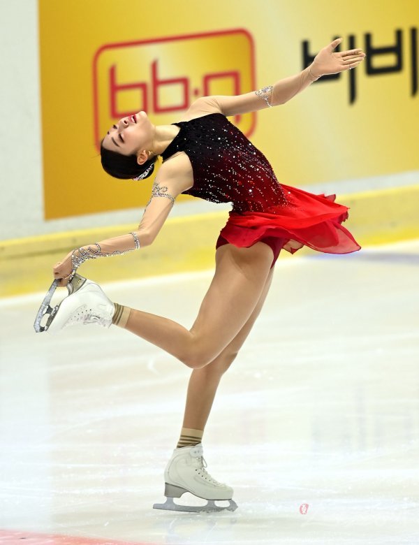 25일 의정부실내빙상장에서 열린 ‘KB금융 코리아 피겨스케이팅 Championships 2021(제75회 전국남녀 피겨스케이팅 종합선수권대회)’에서 도장중 위서영이 쇼트 프로그램을 연기하고 있다.