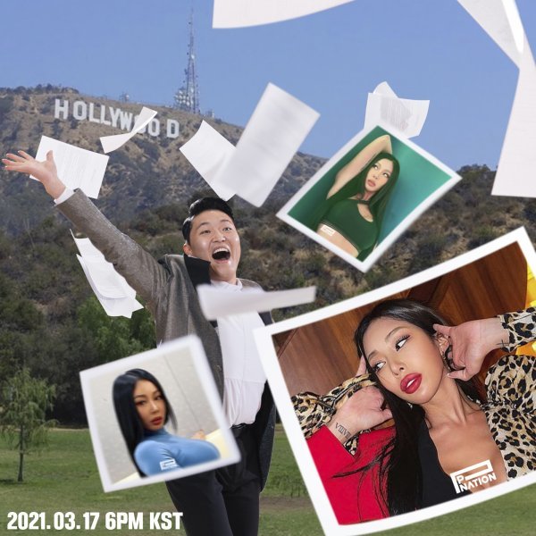 새롭게 공개된 이미지 속 싸이가 할리우드를 배경으로 뿌린 전단에는 제시의 티저 이미지가 담겨 있다. 제시는 작은 사진 속에서도 특유의 당당함이 느껴지는 스웨그를 발산했다.