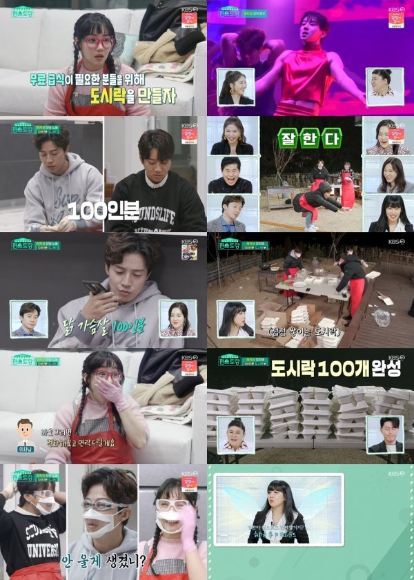 꿀마늘 만들기에 이어 그들을 기다리는 노동은 도시락 100인분 만들기였다. 코로나 19로 인해 현재 많은 무료 급식이 중단된 상황이다. 이에 이유리가 허경환, 황치열에게 직접 도시락 100인분 나눔을 제안한 것. 좋은 일인 만큼 허경환, 황치열도 선뜻 함께 했다. 특히 닭가슴살 CEO 허경환은 직접 닭가슴살 100인분을 쾌척하는 통 큰 면모로 놀라움을 자아냈다.