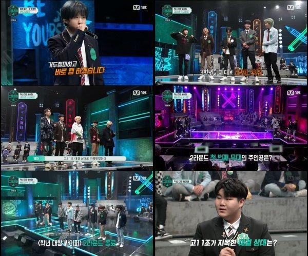 본격적인 첫 라운드가 시작됐고 랩 탐색전을 통해 받은 개별 점수를 합산해 조원 5명의 총점수가 가장 높은 학년의 조부터 지목 우선권이 주어졌다. 총합 점수 1299점을 얻은 고2 3조가 최상위 조로 강요셉, 김민우, 노윤하, 오주안, 지현민이 제일 먼저 상대를 지목할 수 있는 우선권을 얻었다. 이들은 송민재, 이예찬, 염태균, 최규혁, 정환희로 구성된 3학년 1조를 호명하며 첫 지목부터 긴장감 넘치는 분위기를 만들어갔다.