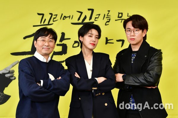 장항준, 장도연, 장성규(왼쪽부터)가 3일 오후 SBS 시사 고양 프로그램 \'꼬리에 꼬리를 무는 그날 이야기 시즌2\' 온라인 제작발표회에 참석해 포즈를 취하고 있다.