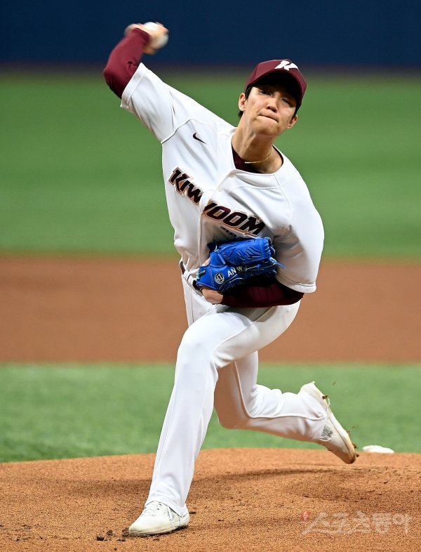 3일 서울 고척스카이돔에서 키움 히어로즈의 청백전 경기가 열렸다. 키움 선발 안우진이 힘차게 볼을 던지고 있다.