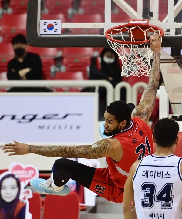 3일 울산동천체육관에서 열린 ‘2020-2021 현대모비스 프로농구’ 울산 현대모비스와 전주 KCC의 경기에서 현대모비스 숀롱이 덩크슛을 하고 있다.