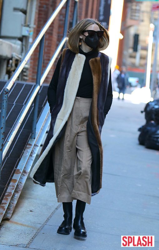 3일(현지시간) 미국 뉴욕에 한 거리에서 포착된 올리비아 팔레르모는 블랙 니트와 베이지 팬츠, 독특한 퍼 코트를 매치하여 엣지 넘치는 면모를 드러냈다.