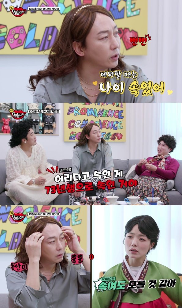 우선, 탁재훈은 데뷔 당시 나이를 속였다고 고백했다. 9살 연하라고 믿었던 아내가 결혼 후 3살 연상이라는 사연을 소개하며, 충격적인 상황에 MC들은 경악했다. 비슷한 경험담으로 장동민은 "나보다 네 살 어리다고 한 여자친구를 만난 적이 있는데, 알고 보니 나와 동갑이었다"고 운을 뗐다. 이어 "여자친구에게 \'내가 오빠 맞아?\'라고 물었더니 \'너무 오빠가 좋아서 속일 수밖에 없었어요\'라고 고백하더라"고 회상했다.