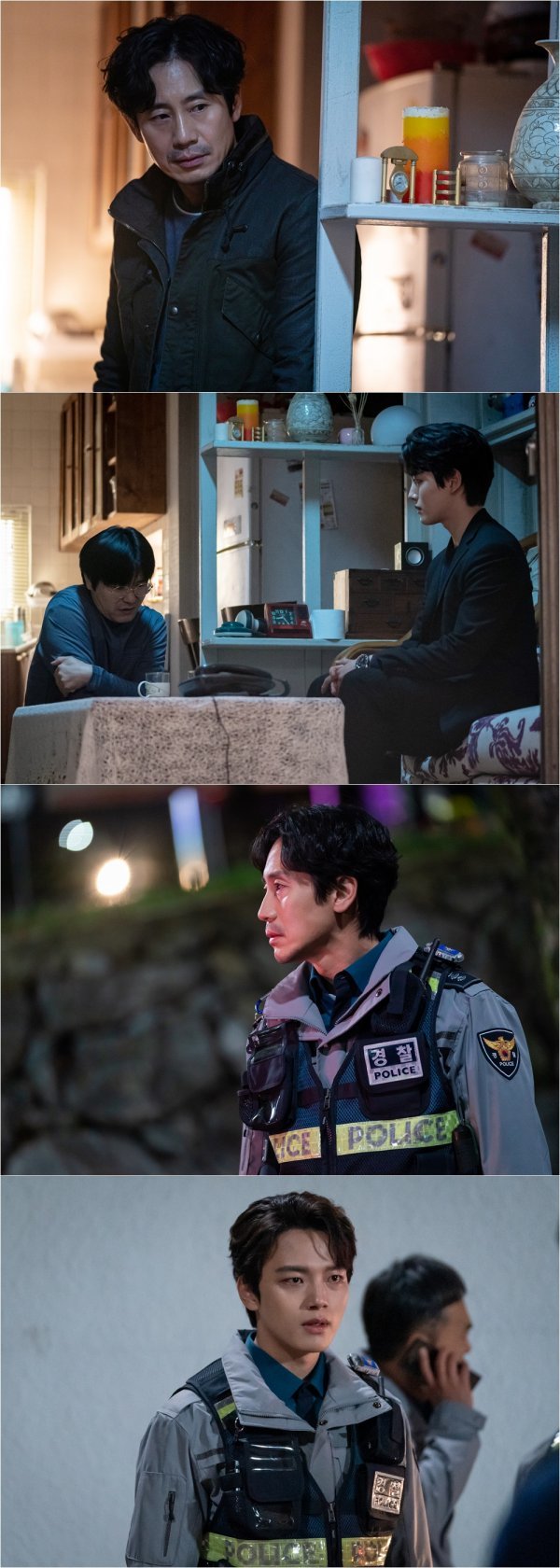 그런 가운데 공개된 사진 속 강진묵의 행보가 궁금증을 자아낸다. 강진묵은 무슨 일인지 이동식과 한주원을 집으로 불러들였다. 강진묵의 이야기를 신중하게 경청하는 한주원. 눈도 마주치지 못하고 말을 이어나가는 그의 변화가 호기심을 자극한다. 이를 지켜보는 이동식의 불안한 눈빛은 긴장감을 더한다. 이어진 사진 속 이동식과 한주원은 혼란에 휩싸여 어딘가를 응시하고 있다. 충격에 빠진 이동식을 바라보는 한주원의 굳은 얼굴에서 심상치 않은 변수가 닥쳤음을 예감케 한다. 과연 무엇이 이들을 다시 소용돌이에 빠지게 했는지 이목이 집중된다.