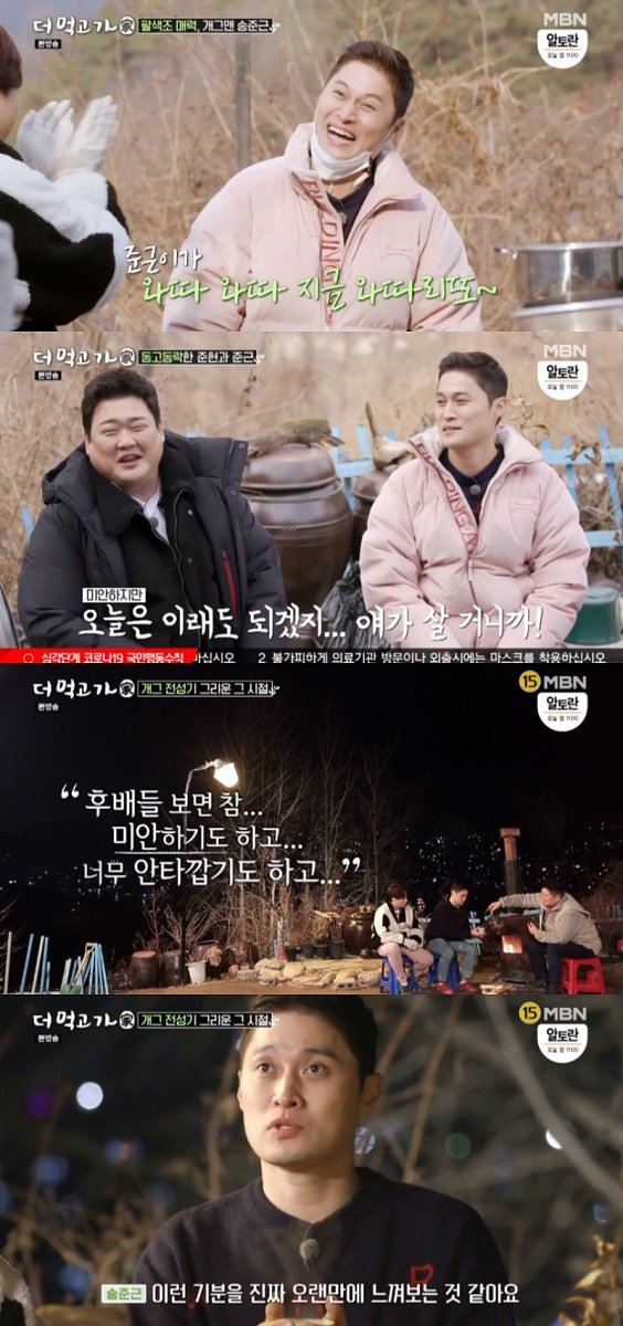 그러면서 개그맨 후배들에 대한 각별한 마음을 드러내기도 했다. 송준근은 "후배들이 어렵게 고생해서 공채 개그맨이 됐는데 무대가 없어지니까 인생의 목표가 없어져버렸다. 그래서 후배들 보면 미안하기도 하고 안타깝기도 하다"고 말했다.