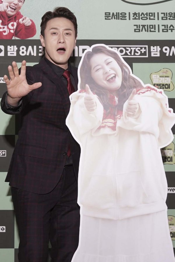 개그맨 김원효가 8일 오전 MBC 에브리원 \'두근두근 레이스 달려라 댕댕이\'(달려라 댕댕이) 온라인 제작발표회에 참석해 포즈를 취하고 있다.