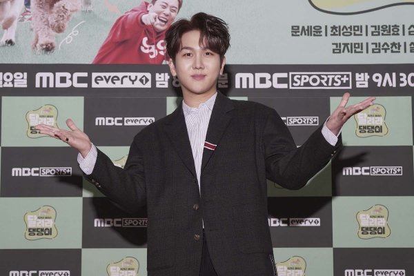 트로트 가수 김수찬이 8일 오전 MBC 에브리원 \'두근두근 레이스 달려라 댕댕이\'(달려라 댕댕이) 온라인 제작발표회에 참석해 포즈를 취하고 있다.