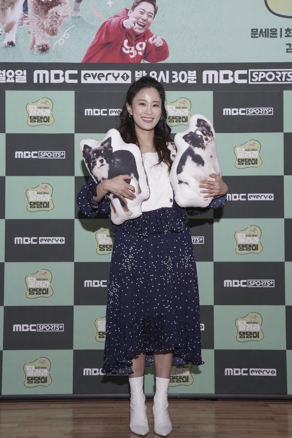 개그맨 김지민이 8일 오전 MBC 에브리원 \'두근두근 레이스 달려라 댕댕이\'(달려라 댕댕이) 온라인 제작발표회에 참석해 포즈를 취하고 있다.