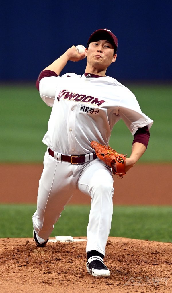 키움 히어로즈가 8일 서울 고척스카이돔에서 자체 청백전을 가졌다. 교체 등판한 임규빈이 역투하고 있다.