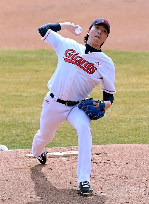 9일 부산 사직야구장에서 롯데 자이언츠와 SSG 랜더스의 연습경기가 열렸다. 롯데 선발투수 이승헌이 힘차게 볼을 던지고 있다. 사직 | 김민성 기자 marineboy@donga.com