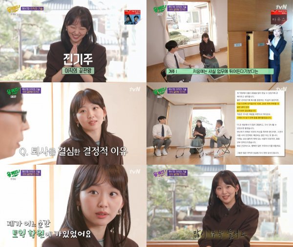 배우 진기주가 tvN ‘유퀴즈’에서 숨겨뒀던 입담을 터트렸다.삼성 직원에서 배우가 되기까지