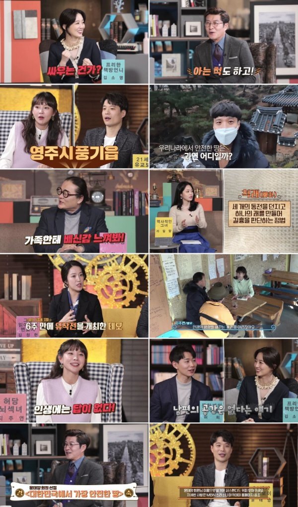 가장 먼저 철학박사 윤태양은 ‘우리나라에서 가장 안전한 땅’을 주제로 이야기를 펼쳤다. 윤태양은 조선시대 예언서 ‘정감록’에 기록된 가장 안전한 땅 10곳(십승지) 중 하나인 영주시 풍기읍으로 향했다. 답사 결과 이곳은 촬영 당시까지 코로나19 확진자가 한 명도 없고, 6.25 당시에도 전쟁 상황을 모를 정도로 인사 사고가 없는 곳이었다. 화면으로 풍기 지역을 둘러본 회원들은 “영화 ‘웰컴 투 동막골’이 떠오른다”며 감탄했고, 김갑수가 ‘정감록’을 직접 들고 나와 소개해 분위기가 고조됐다.