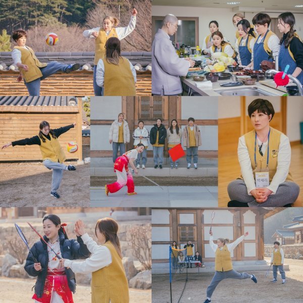 특히 언니들끼리 진행된 3대 3 족구 대결에서 정유인, 곽민정과 한 팀이 된 박세리는 화내지 않기로 한 템플스테이의 규칙을 잊고 분노를 마구 표출했다는 후문. 급기야 “공이 오면 그냥 피해”라고 했다고 해 피구가 의심되는 언니들의 대환장 족구 대결에 기대가 모아진다.