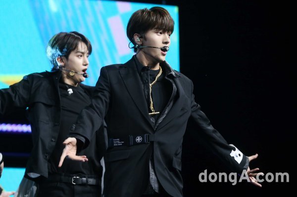 그룹 드리핀의 차준호가 16일 오후 서울 광진구 예스24라이브홀에서 열린 두 번째 미니앨범 \'어 베러 투모로우(A Better Tomorrow)\' 발매 쇼케이스에 참석해 새로운 무대를 꾸미고 있다. .