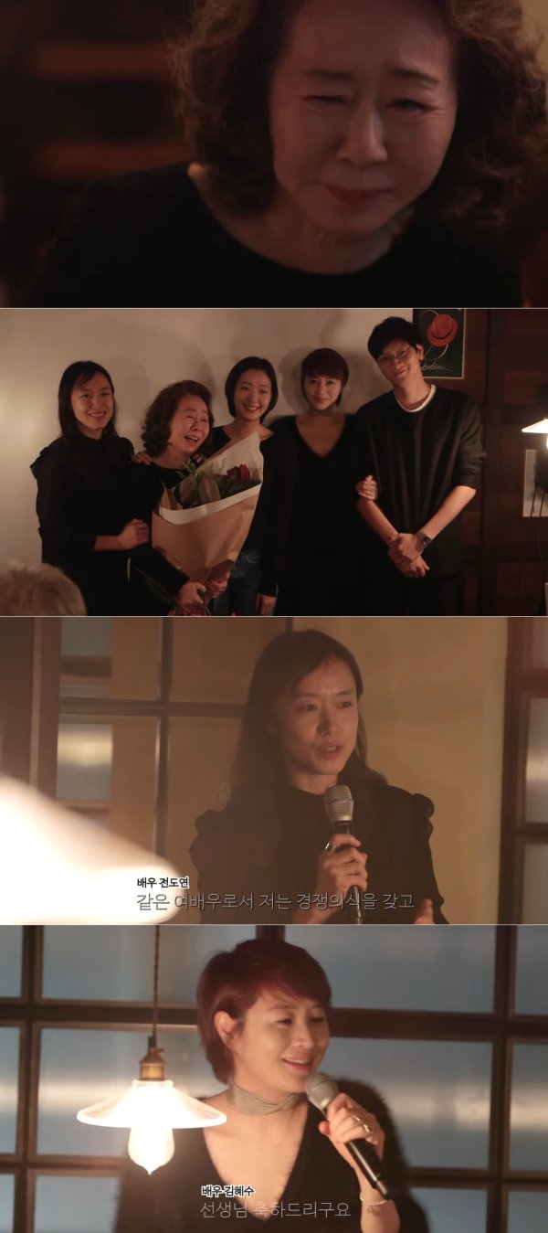윤여정의 데뷔 50주년 축하 파티 영상이 공개됐다.
