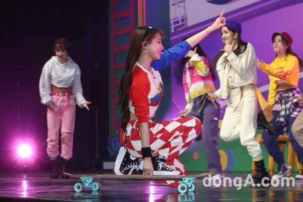 그룹 위클리가 17일 오후 서울 마포구 신한카드 판스퀘어에서 열린 세 번째 미니앨범 \'위 플레이(We Play)\' 발매 쇼케이스에 참석해 포즈를 취하고 있다.