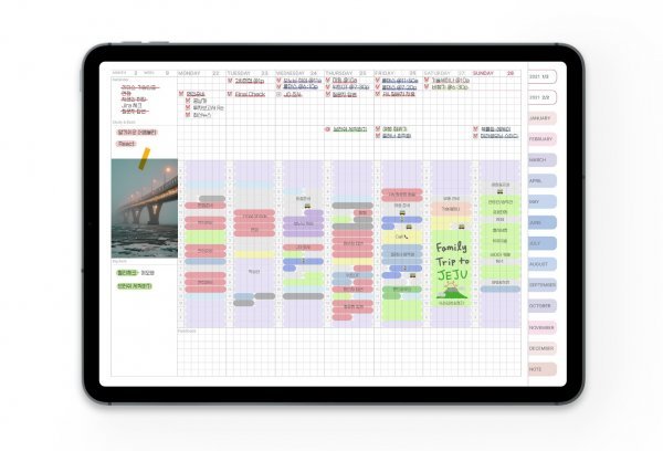디지털 플래너는 이얼리-먼슬리-위클리로 이어지는 체계적인 구성으로 플래너 내에 삽입된 하이퍼링크를 통해 자유롭게 이동하면서 언제 어디서든 쉽게 기록할 수 있다.