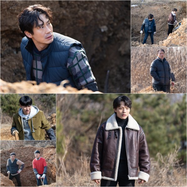 그런 가운데 공개된 사진 속, ‘진리건업’ 사유지를 파헤치는 만양 파출소의 심상치 않은 움직임이 폭풍전야의 긴장감을 자아낸다. 진리건업은 ‘JL건설’의 옛 이름으로, 문주 신도시 개발에 혈안이 되어 있는 이창진(허성태 분)이 대표로 있는 기업이다. 이동식과 한주원은 이곳에서 어떤 진실을 찾고 있을까. 앞선 예고편에서 무언가에 놀라 비명을 지르는 오지훈(남윤수 분)이 포착된바, 이들 앞에 펼쳐진 믿을 수 없는 광경에 궁금증이 증폭된다. 충격에 빠진 이동식과 한주원의 얼굴도 흥미롭다. 이어 동요하는 남상배(천호진 분)와 굳은 얼굴의 조길구(손상규 분), 황광영(백석광 분)까지 더해지며 위기감을 고조시킨다. 과연 이들의 시선 끝에는 무엇이 있을지, 무섭게 휘몰아칠 폭풍을 예감케 한다.