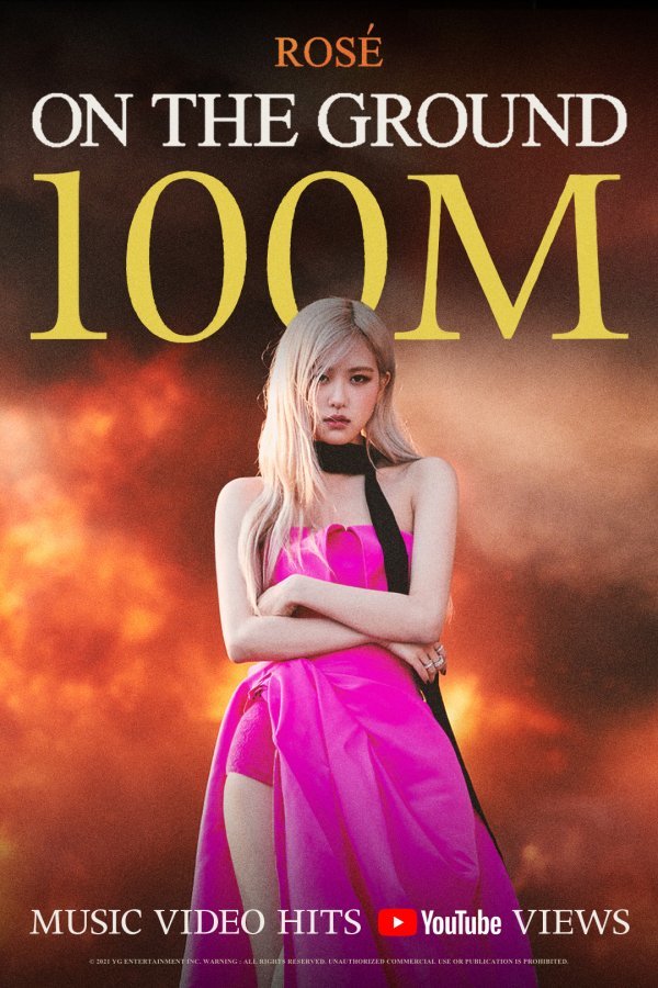 20일 YG엔터테인먼트에 따르면 로제의 \'On The Ground\' 뮤직비디오는 이날 오전 5시 55분께 유튜브에서 조회수 1억 회를 넘어섰다. 지난 12일 오후 2시 공개된지 7일 15시간 55분만이다.