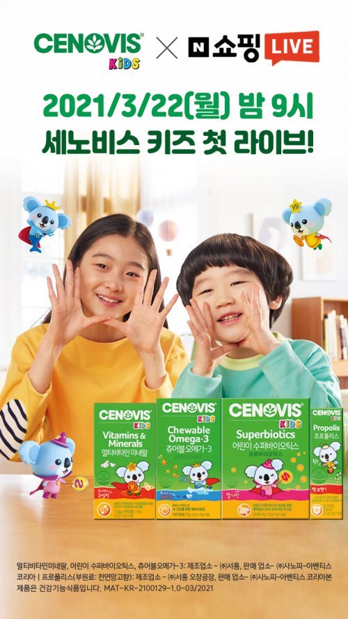 어린이 건강기능식품 브랜드 세노비스 키즈가 22일 오후 9시부터 브랜드 최초로