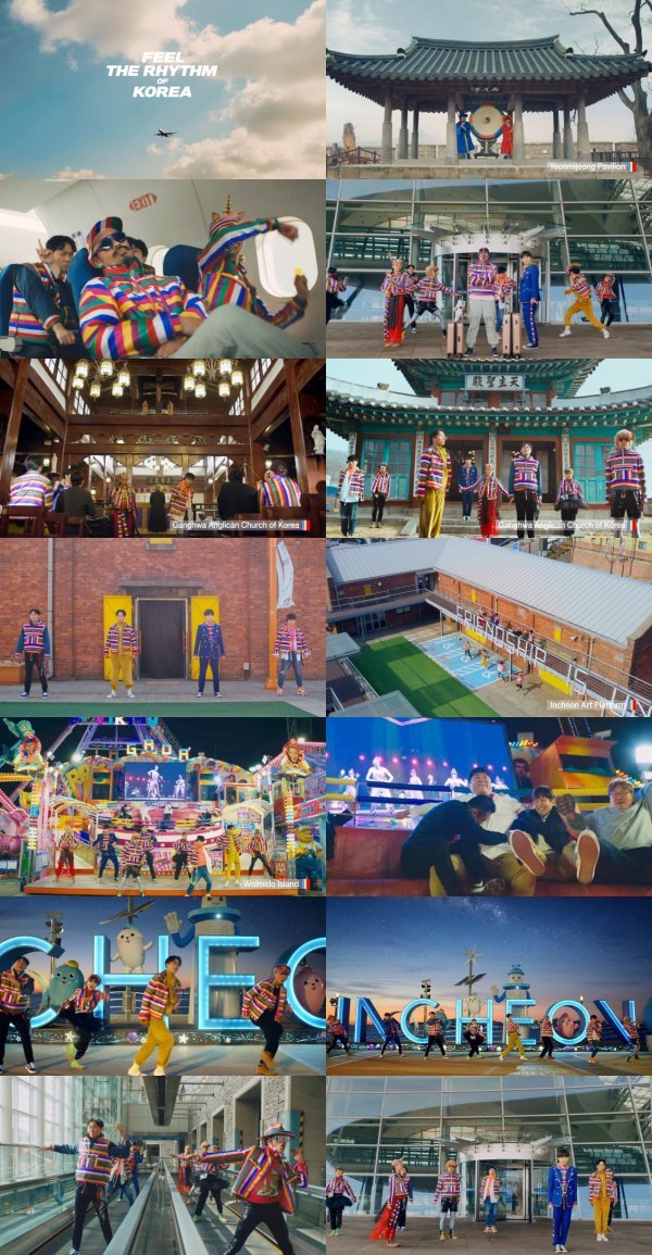 ‘1박 2일’ 멤버들이 직접 참여한 ‘Feel the Rhythm of Korea’ 특별편은 앰비규어스 댄스컴퍼니의 안무와 밴드 ‘이날치’의 곡 ‘의사줌치’가 만나 신명 나는 가락을 선사한다. 또한, 인천의 상징적인 장소를 통해 위기를 극복하고 눈부신 발전을 이룬 대한민국의 기적을 표현해, 국내외의 이목을 사로잡고 있다.