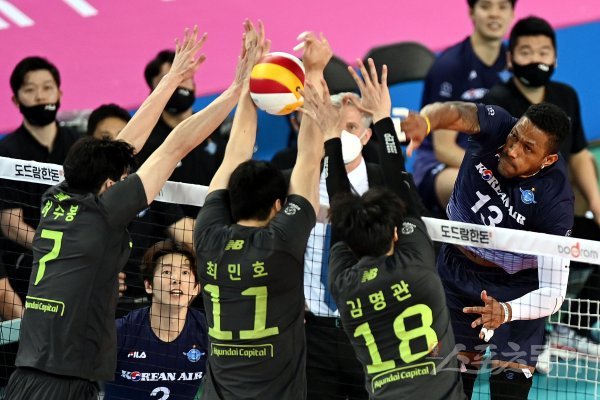 25일 인천 계양체육관에서 ‘2020-2021 도드람 V리그’ 인천 대한항공과 천안 현대캐피탈의 남자부 경기가 열렸다.