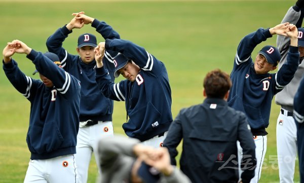 28일 인천 SSG 랜더스필드에서 ‘2021 신한은행 SOL KBO리그’ SSG 랜더스와 두산 베어스의 시범경기가 열린다. 경기 전 LG에서 두산으로 이적한 양석환이 몸을 풀고 있다.