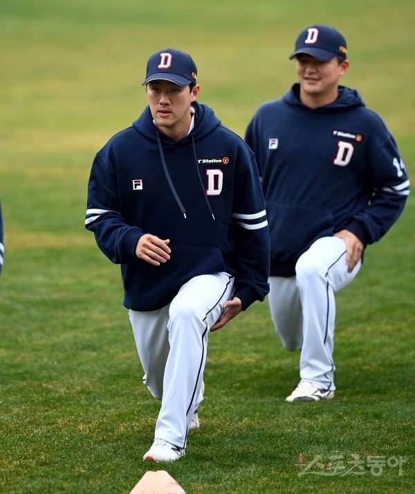 28일 인천 SSG 랜더스필드에서 ‘2021 신한은행 SOL KBO리그’ SSG 랜더스와 두산 베어스의 시범경기가 열린다. 경기 전 LG에서 두산으로 이적한 양석환이 몸을 풀고 있다.