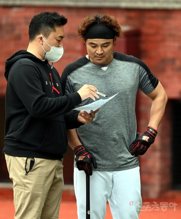 28일 인천 SSG 랜더스필드에서 ‘2021 신한은행 SOL KBO리그’ SSG 랜더스와 두산 베어스의 시범경기가 열린다. 경기 전 SSG 추신수가 실내훈련 스케줄을 확인하고 있다.