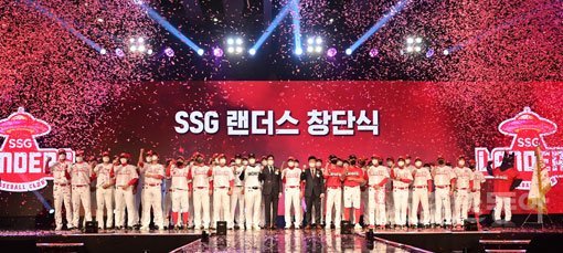 SSG 구단주인 정용진 신세계그룹 부회장도 창단식에 참석해 “신세계는 여러분의 도전에 든든한 조력자가 되겠다”며 “개인적으로 SSG가 144경기 이상을 하게 될 것 같은 강한 느낌이 든다. 마지막 한 경기까지 여러분과 함께 하겠다”고 약속했다.