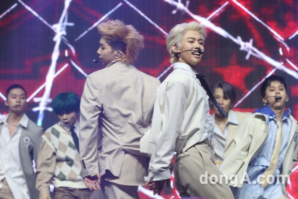 그룹 T1419가 31일 오후 서울 마포구 신한은행 판스퀘어에서 열린 두 번째 싱글앨범 \'BEFORE SUNRISE Part.2\' 쇼케이스에서 새로운 무대를 선보이고 있다.