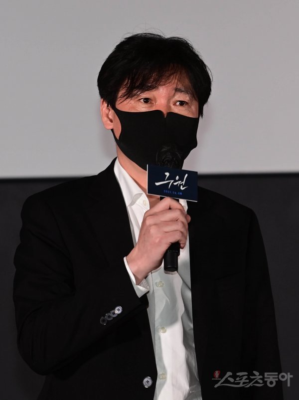 배우 김대건이 1일 서울 광진구 롯데시네마 건대입구점에서 열린 영화 ‘구원’ 언론시사회에서 인사말을 하고 있다.