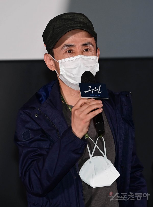 배우 고관재가 1일 서울 광진구 롯데시네마 건대입구점에서 열린 영화 ‘구원’ 언론시사회에서 인사말을 하고 있다.
