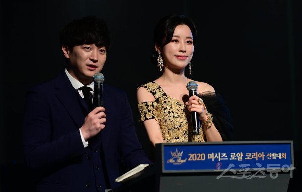 아나운서 김태환, 배우 김혜원이 3일 서울 광진구 광장동 그랜드워커힐호텔서울에서 열린 ‘2020 미시즈 로얄 코리아’ 선발대회에서 MC를 맡아 진행하고 있다. 작년 사회적 거리두기 격상으로 열리지 못한 ‘미시즈 로얄 코리아’는 미시즈 미인선발대회로 올해 신설된 80개국이 참가하는 월드대회 출전권을 부여하여 한국 대표 미시즈 홍보대사를 선발하여 글로벌 문화산업과 뷰티, 패션산업 등을 세계에 널리 알리는 다양한 활동을 하게 된다.