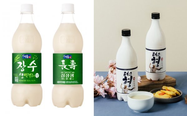 보울라디를 담은 장수 생막걸리(왼쪽)와 CU ‘테스형 막걸리’. 사진제공 l 서울장수·CU
