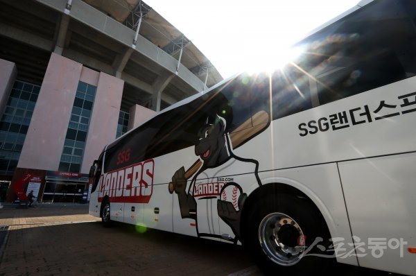 6일 인천 SSG 랜더스필드에서 ‘2021 신한은행 SOL KBO리그’ SSG 랜더스와 한화 이글스의 경기가 열린다. 경기 전 SSG 구단버스에 구단로고, 마스코트가 새롭게 바뀌어 있다.