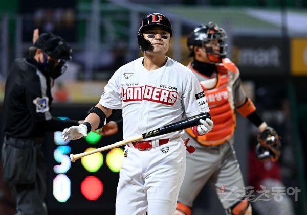 6회말 무사에서 SSG 추신수가 삼진 아웃으로 물러나고 있다.