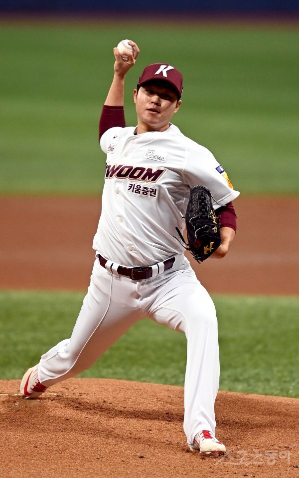 선발 투수로 등판한 키움 김정인이 역투하고 있다.