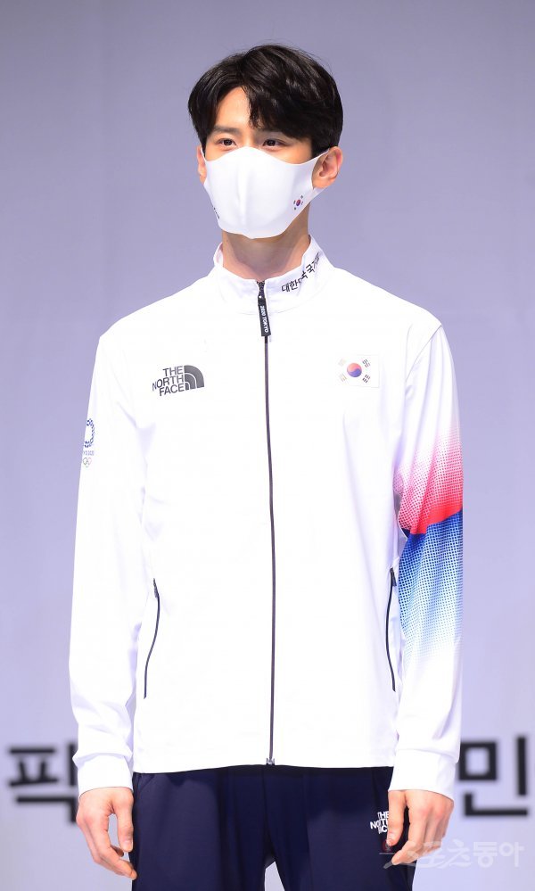 14일 충북 진천국가대표선수촌에서 ‘2020 도쿄하계올림픽대회 G-100 미디어데이’가 열렸다. 태권도 선수 이대훈이 선수단복 시연회에서 포즈를 취하고 있다.