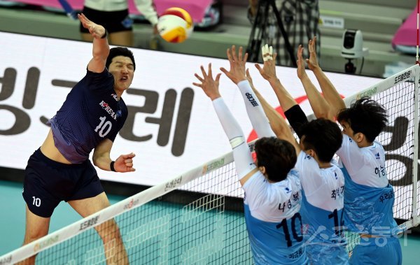 17일 인천 계양체육관에서 ‘2020-2021 도드람 V리그’ 인천 대한항공과 서울 우리카드의 남자부 챔피언결정전 5차전 경기가 열렸다. 대한항공 정지석이 우리카드 블로커를 피해 스파이크를 날리고 있다.